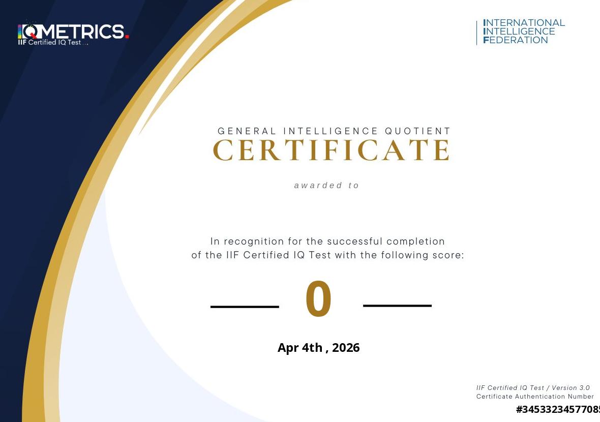 IQ Metrics is a reliable and trustworthy platform for IQ testing. The scores certificate and detailed analysis report were professionally designed and gave me a clear understanding of my intellectual potential.